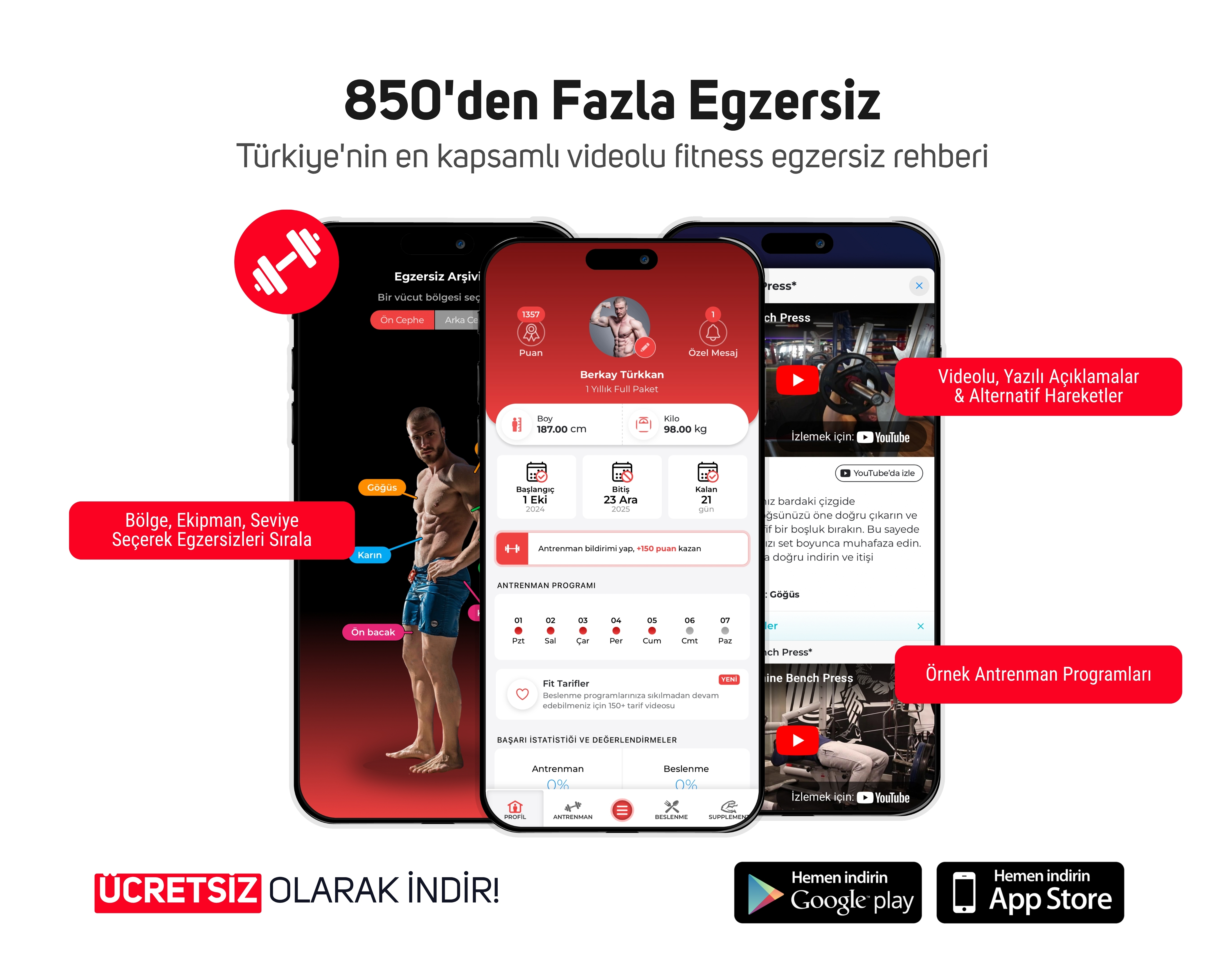 Berkay Türkkan Fitness mobil uygulamasıyla antrenman ve beslenme adına ihtiyaç duyacağınız her şey cebinizde!